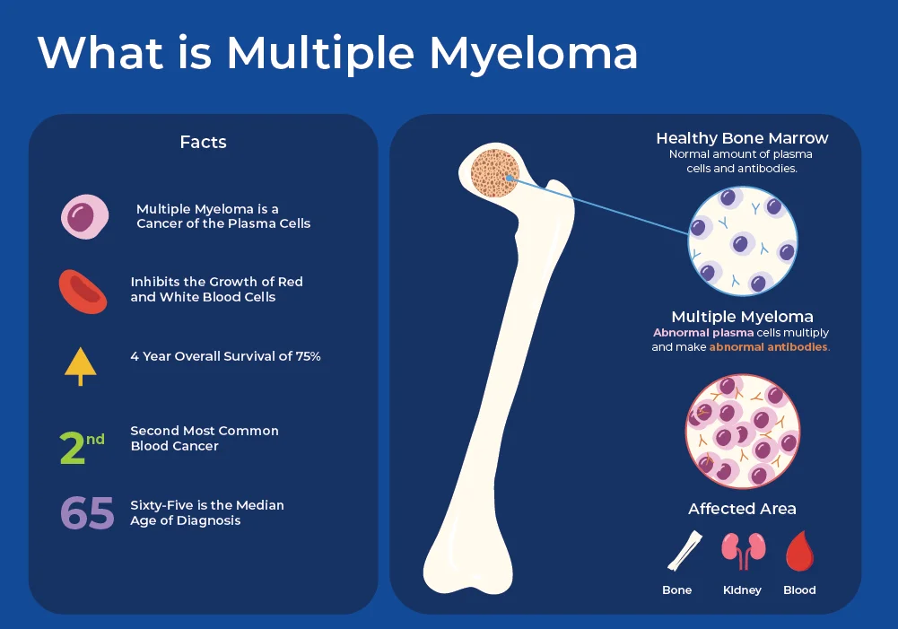 Multiple myeloma is a cancer that forms in a type of white blood cell called a plasma cell.